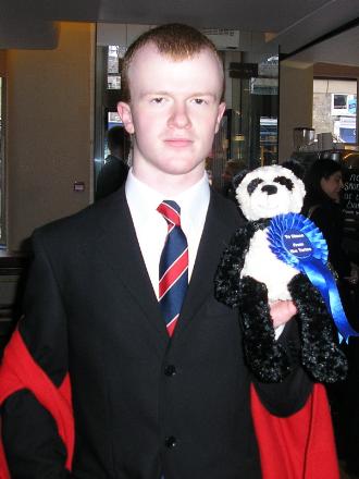 Following the Rectorial Address, a benediction was given (in Latin), and everyone highed off to the Quad, where a reception followed in Lower College Hall and Upper College Hall. To the outrage of many, including yours truly, there was no champagne. Heck, there wasn’t even wine. Just tea, coffee, water, and a selection of cakes and biscuits. Outrageous! I could understand if the Rector was teetotal but seeing as I had been defeated by him in a drinking competition only the previous afternoon, I knew this was not the case. Simply outrageous. I didn’t stay long. I dumped my gown in hall, changed out of my three-piece suit and headed to Canmore. It was just an hour or so until Mass, during which I naturally prayed for our new rector, who’s quite a nice fellow and from all appearances will make quite a capable Lord Rector, representing the students’ interests and chairing of the University Court. Lack of champagne aside, the rectorial festivities were most enjoyable, and I do hope they continue so long as this university exists.