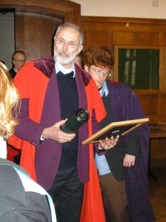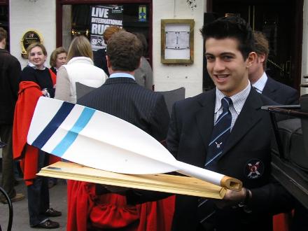 We presented the Lord Rector with a mounted wooden oar blade, the quality German craftsmanship of which we are indebted to ascribe to Herr Alex Cooper. Above, Chris Kololian exhibits the mounted oar blade, replete with his Canadian grin.
