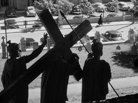I just watched ‘I confess’, an excellent film indeed. The cinematography was classic Hitchcock, long silent scenes, where you have only the expression of the characters to go on.