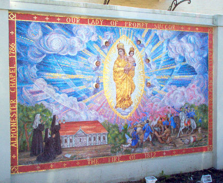 In 1997, the Archdiocese commissioned Professor Sergio Papucci of Florence to complete this mosaic (below) commemorating Notre Dame de Bon Secours. As a final note, the current Ursuline convent runs the oldest continuously-operated school for girls in the United States, as well as being home to the National Shrine of Our Lady of Prompt Succor. The old palace is now home to the archdiocesan archives, which date back to the foundation of the city by the French in the eighteenth century.