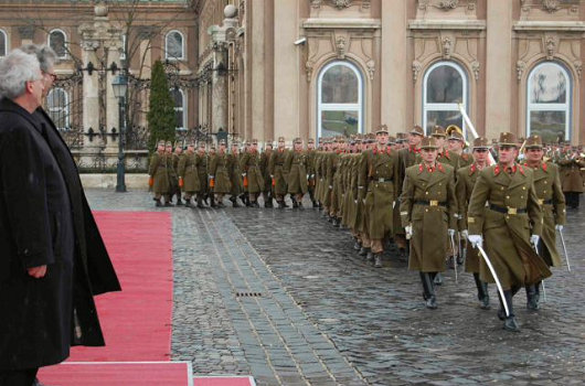 I presume that the wonderfully ’30s style greatcoats of the honour guard are a result of a sensible policy of restoration on the part of the authorities of post Communist Hungary?