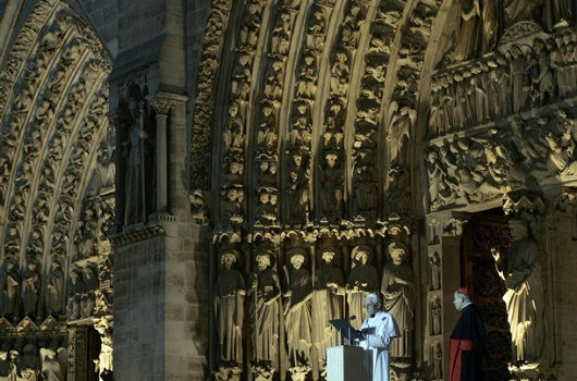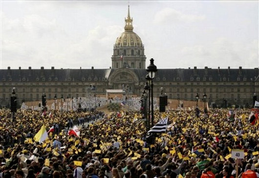 Après les Vêpres, Benoît s’est adressé aux 60.000 personnes – pour la plupart des jeunes – qui s’étaient rassemblées sur la place et dans les rues entourant Notre-Dame. Dans ses propos, le pape a condamné « le fondamentalisme fanatique », qui, pour beaucoup visait l’Islam radical, mais qui pouvait tout aussi bien être compris comme une attaque contre le nihilisme athée de l'”établissement” européen, ou contre l’impérialisme libéral agressif de Washington.
