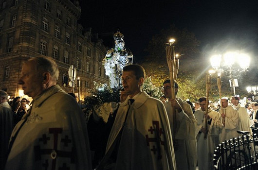 Après le discours du pape, une statue de la Vierge fut conduite en procession dans les rues de Paris, depuis la cathédrale jusqu’à la Nonciature apostolique où le pape résidait pendant son séjour.