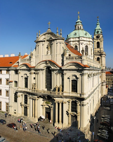 The church is the masterpiece of the Dientzenhofers, father Christoph and son Kilian Ignaz. (Confusingly, they also worked on the other St. Nicholas, at Old Town Square).