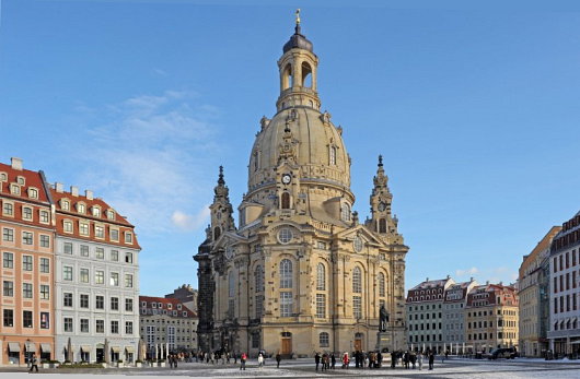Up to this point, Dresden had become known for its commendable progress in rebuilding the historic structures destroyed during the war and left as rubble during the Communist period. The completion of the Frauenkirche (above, the Lutheran church of Our Lady) has been particularly applauded. But Libeskind attacks this progress, claiming that “sentimentality is not a foundation on which you can build a new city.” One is tempted to point out that Dresden is not a new city, having its origins in the late twelfth century, in a region that had been settled by the Linear Pottery tribes around 7500 B.C., but one suspects anything more than five minutes old is of little interest to Mr. Libeskind.