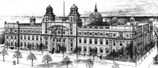 The Royal College of Science was the last significant public building of the British era in Dublin’s history. Edward VII laid the foundation stone in 1904 and was opened by George V in 1911. Sir Aston Webb, a capable but far from excellent architect best known for the current façade of Buckingham Palace, designed the complex on the site of a row of Georgian townhouses that were demolished one-by-one as the structure was sequentially completed.