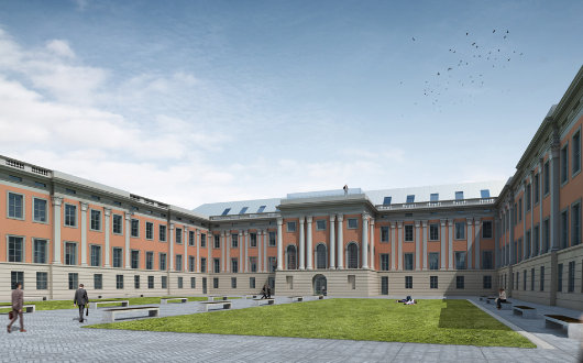 The palace’s absense left a formless void in the middle of Potsdam’s city center. In the mid 1990s, the Prince of Wales put together an Urban Task Force to study the city in terms of traditional urban design and architecture and recommended rebuilding much of the lost structures of the Old Market. This included constructing a new stadtschloss on the outline of the old one, but to a new design in a traditional style. While the proposals of the Prince of Wales’s Urban Task Force initiated much debate and discussion, the old palace’s Fortuna Gate was restored in 2000-2001 with funds donated by the television host Günter Jauch (of the old Hanseatic family of Jauch). Last year, the Brandenburg parliament finally decided to commit to rebuilding the palace, and construction work began last month. The decision to restore the old palace has inspired similar plans to reconstruct the old Barberini Palace next door.