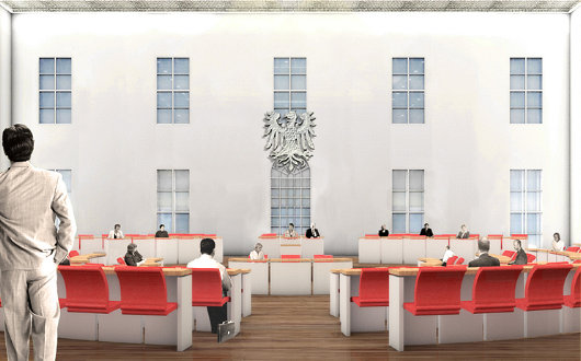 One early plan called for a modern structure to be built in the courtyard to house the Brandenburg provincial parliament.