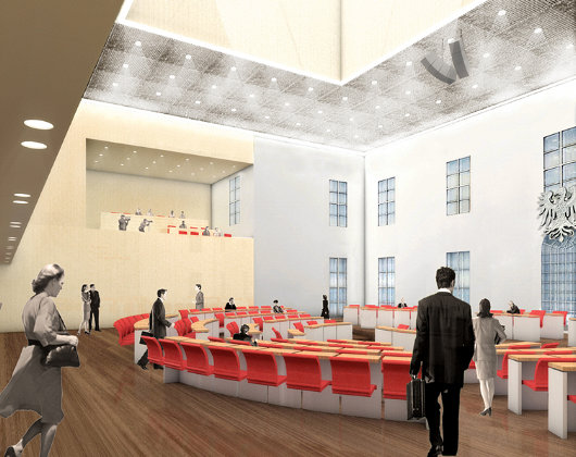 However, it was decided to house the legislature in the center of the main wing of the palace itself.