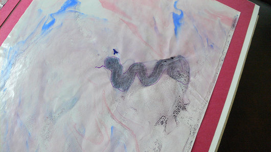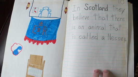 In an arts-and-craftsy way, we had to produce end-papers for the books that replicated the marbling technique you see in many old books. Appropriately enough, one of the squibbles that emerged looked to seven-year-old me like the Loch Ness Monster, and was duly outlined in pen and given a tongue to stick out at the reader.