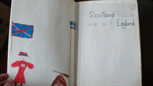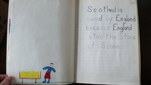 Scotland is owned by England because England stole the Stone of Scone. When I was a kid I thought the Stone of Scone was the coolest thing on God’s green Earth. The first time I saw it would’ve been the summer in between kindergarten and first grade, less than a year before I wrote this “book”, when it rested in the Coronation Chair in Westminster Abbey. My more recent trips to see the Stone of Scone have been to Edinburgh Castle after it was returned, with much pomp and ceremony, to its rightful home in 1996.