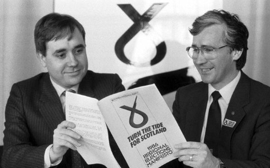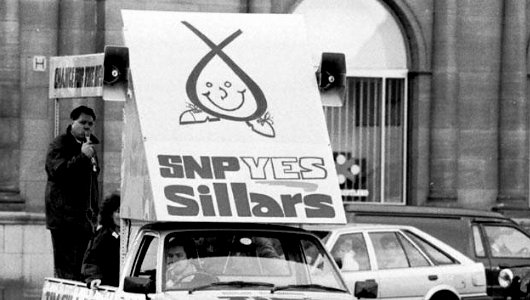 As if to add to the misery of their decision, the party bigwigs then made the pseudo-fascist emblem even worse by filling it in and sticking a black star towards the top of it. It was immediately recognised as a mysteriously cycloptic bunny and fell into great disfavour among the party faithful and the public in general, though the cartooning profession had a field day with it. Gibbs called it the “cyclops bunny mutant”, its adoption “a serious gaffe” by the SNP. Introduced at the 1996 spring party conference, by the end of the summer it was done for. “Without giving the poor creature a chance, the activists of the Scottish National Party have decided that the only place this rabbit should go is into a stew,” wrote Peter MacMahon in the Scotsman. The bunny was succeeded by the auld clootie dumpling and, MacMahon pondered, “a piece of artwork that could make a tasty main course was being replaced by a pudding”.
