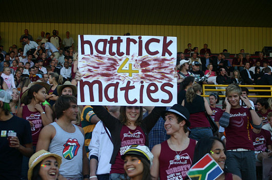 In anticipation of the annual commemoration of my birth, the University of Stellenbosch Rugby Football Club yesterday sailed to yet another victory in the FNB-sponsored Varsity Cup. Of course, a Maties victory is not exactly news — Stellenbosch is accustomed to victory, especially on the home turf at Coetzenburg (seen above). Indeed, Stellenbosch have won every Varsity Cup since the competition’s incarnation, which seems much less impressive when one points out this is only the third year of its existence. Nonetheless, to defeat the traditional rivals of the University of Cape Town — Maties and Ikeys are like Hatfields & McCoys — particularly warms the cockles of the heart. 17-14, not a bad score — the Ikey Tigers put in a good effort, but I am told UCT hasn’t beaten Stellenbosch in rugby for nearly 20 years. Impressive, considering that — despite being Ikeys — UCT manages to put up a good quad and make it to the final.