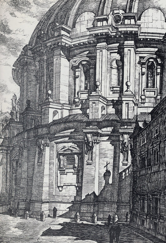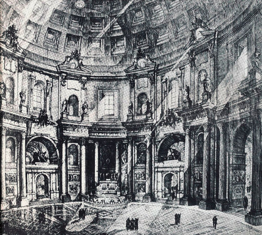 GOOD ARCHITECTURE requires a combination of willpower, taste, and resources. This nexus used to occur quite often; instances from the Renaissance and the long nineteenth century come most easily to mind. A late twilight of this combination is found in the magnum opus of the Italian architect Armando Brasini: the Church of the Immaculate Heart of Mary in Rome’s swish Parioli neighbourhood.