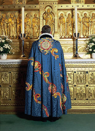 Valeria, it’s a Queen at the moment, not a King. You can see one of the (Lutheran) vestments she designed here: http://www.andrewcusack.com/margbda3.jpg