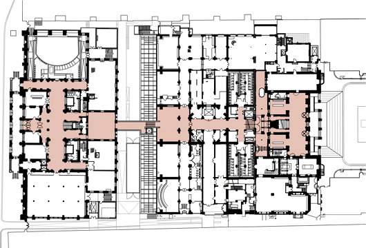“The project will effectively double the area of public space available in the RA,” Building Design reports. “The upper-level galleries alone are two and a half times the size of the Sackler galleries. The question of how all this space will be programmed in the long term remains the subject of much debate within the RA and is no doubt being monitored closely by other institutions such as the ICA and Somerset House, for whom the emergence of such a venue may represent a considerable challenge. However, after more than a decade of frustrations, it now looks increasingly certain that 6 Burlington Gardens is set to form an integral part of the Royal Academy.”