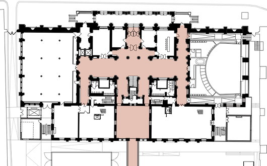 In 2008, the Royal Academy held a competition to design a new integration of the two buildings, which was won by David Chipperfield. In order to fund the transformation, the RA have leased No. 6 out to two galleries: Haunch of Venison from 2009 to 2011, and now the Pace Gallery. The Royal Academy hopes Chipperfield’s scheme will be implemented by the RA’s two-hundredth anniversary in 2018.