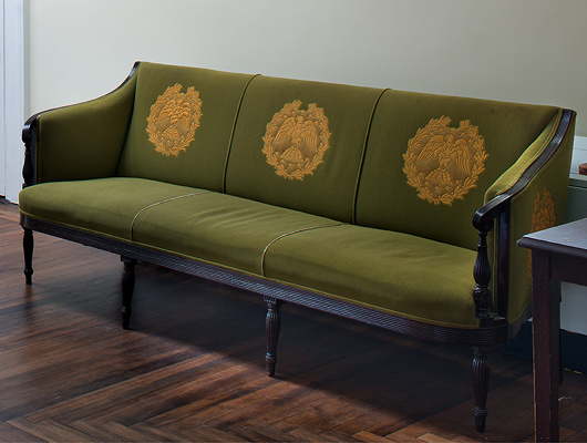 Some of the custom-made furniture features the eagle-and-globe crest from the city’s coat of arms, including five stars to represent the five boroughs of Manhattan, Brooklyn, Queen’s, the Bronx, and Staten Island.