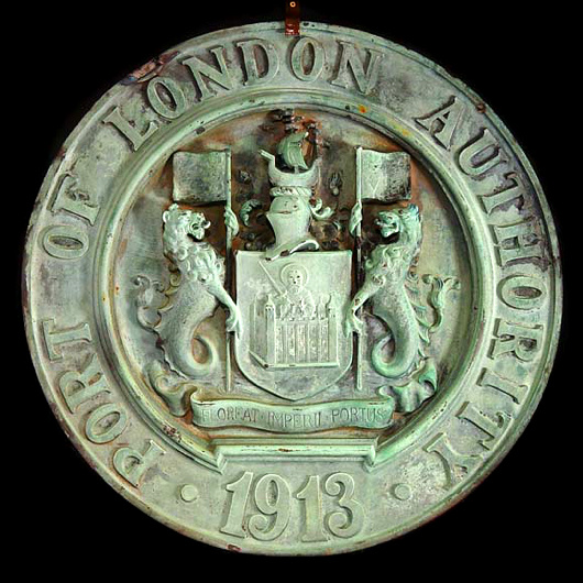 After its foundation the PLA rationalised the layout and organisation of London’s dock system, and their significant constructions allowed the Port to displays its arms on numerous buildings. One such display (above) was recently sold by Westland London.