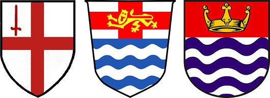 Supporters: On either side a sea-lion argent, crined, finned and tufted or, issuing from waves of the sea proper, that to the sinister grasping the banner of King Edward II; the to the sinister the banner of King Edward VII.
