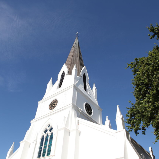 As I walked over the university lawn, I turned at the hoot of a horn, and saw that it came from a motor-bike cop, who wanted to get the attention of and wave to a friend. Small children were paddling in the brook that runs by an avenue of old oaks. Bigger children, spotlessly dressed, went smiling off to their Sunday school, while their elders went to the mother church, where there has been a congregation since 1684. The present building, begun in 1715 and renovated during the 19th century, now has a peculiar boomerang shape so that if you are sitting near one of the ends, you cannot see or hear what is going on at the other side. The church cannot compete in appearance with some of the houses of Stellenbosch, which justify Ruskin’s remark that ‘the only contribution to domestic architecture for centuries was made by the Dutch at the Cape’.
