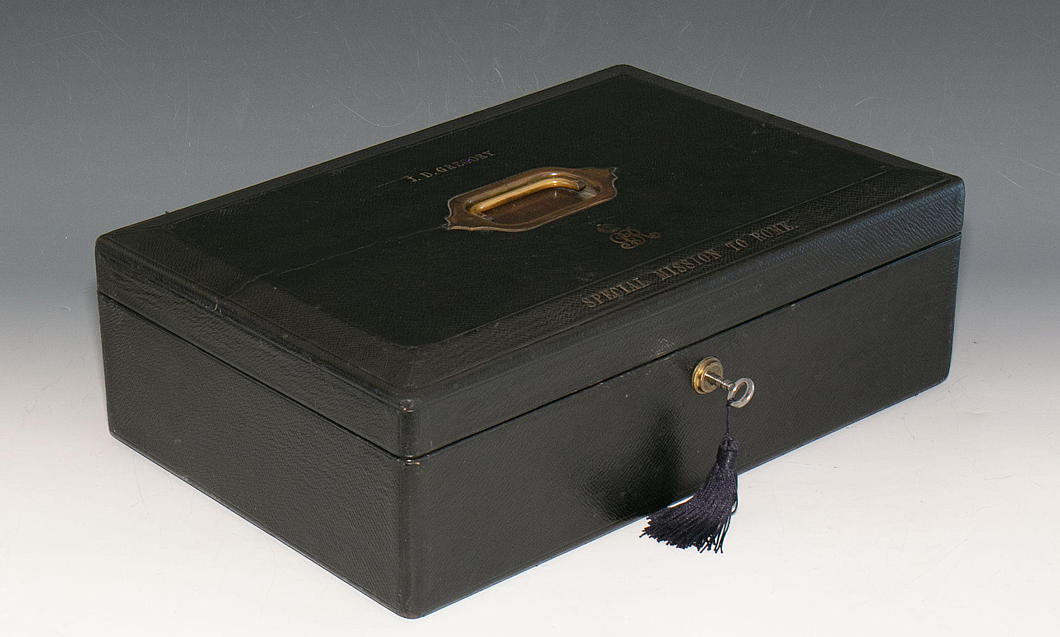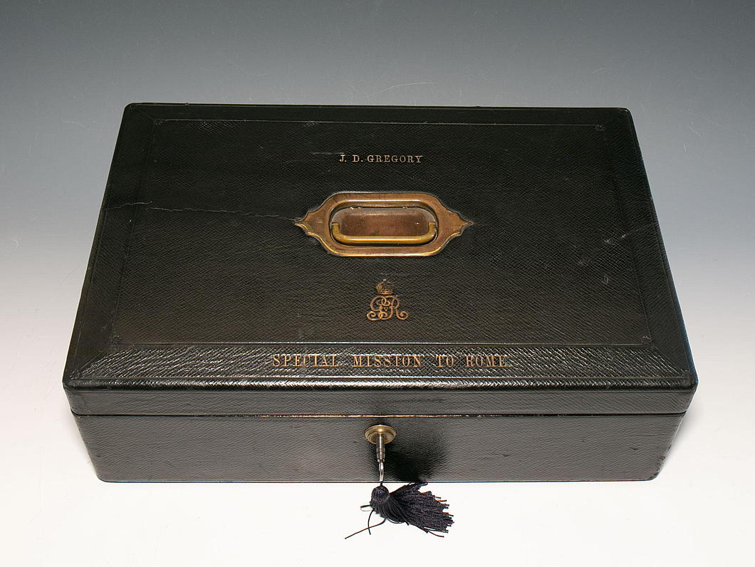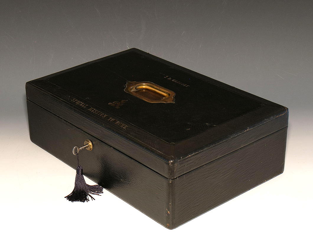 If there are any enthusiasts of the curious subcategory of accoutrement known as the despatch box, J.D. Gregory’s one dating from his time in Rome is currently up for sale from the antiques dealer Gerald Mathias.