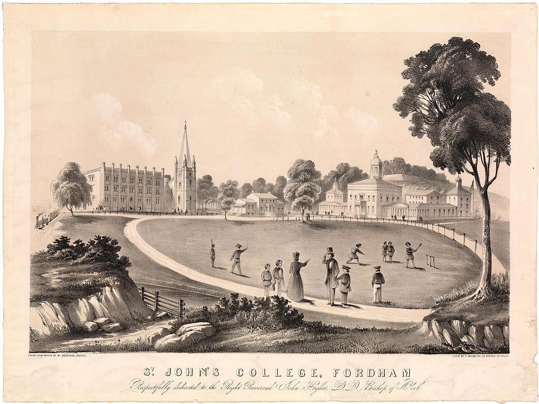 This institution, incorporated with the privileges of a university by an act of the Legislature, is situated near the village of Fordham, in a most picturesque and healthy part of the county of Westchester, at a distance of about eleven miles from the city of New York and three from Harlem. It is of easy access at any season of the year, by private conveyance or by the railroad, which passes immediately along the borders of the beautiful lawn in front of the college. The buildings are large, elegant and commodious; the grounds extensive and tastefully laid out.