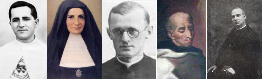 Eight martyrs were proclaimed in the recently-promulgated decrees: all of them of the twentieth century and all of them victims of totalitarianism. Fr. Teófilo Fernández de Legaria Goñi (below, far left) and four companions (all professed priests of the Congregation of the Sacred Hearts of Jesus and Mary), as well as the diocesan priest Fr. José Samsó i Elías (below, far right), were all killed by the Communists in 1936 during the horrible persecution of the Church during the Spanish Civil War. Fr. Georg Häfner (above, far right), a German diocesan priest, was killed in the concentration camp of Dachau in 1942 under the Nazi regime. Bishop Zoltán Lajos Meszlényi (above, far left), an auxiliary bishop of Esztergom, was killed at Kistarcsa in Hungary by the Communist authorities in January 1953.