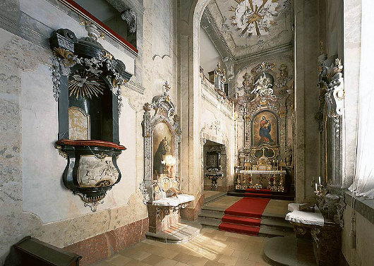 The Chapel of Saint George in the Castle once contained the skull and bones of Pope St. Callixtus I. The remains were obtained by the Emperor Charles IV, who gave them to the Rosenberg family who built the castle, from whom they (and the castle itself) passed to the Schwarzenbergs, only to be lost after 1614. Nonetheless, the skull of an unknown North African martyr came here in 1663, and tradition donated to the unknown saint the name of Callixtus also.