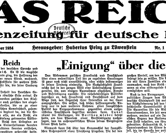 At the beginning of Hitler’s rule, many patriotic German anti-Hitlerites fled to the Saarland, which was Germany but still under French occupation. In a bizarre state of internal exile, anti-Nazi publications, be they Christian, Nationalist, Communist, or Jewish flourished for a very brief period. One of these journals was Das Reich, founded by Hubertus Prinz zu Löwenstein, who (if I recall my personal studies from St Andrews years properly) was a bit of a rogue in his own way, sympathizing with the Red forces during the Spanish Civil War.