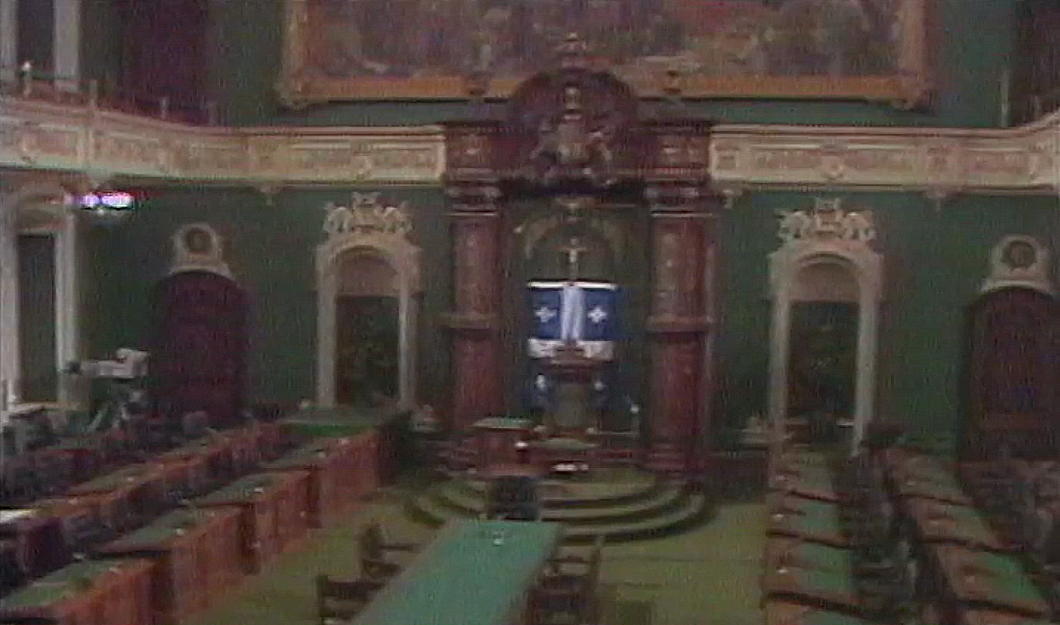 The historian Gaston Deschênes has mentioned the technical requirements of broadcasting also coincided with a desire to break with a “British” tradition. Certainly the government of the day, René Lévesque’s Parti Québécois, didn’t mind the change, while Maurice Bellemare — “the old lion of Quebec politics” and sometime leader of the old Union nationale — was deeply pleased that the chamber adopted the colour of Quebec’s flag.
