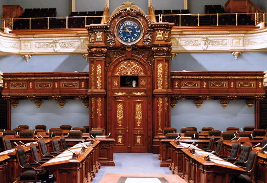 Renovations are scheduled to begin in January of next year, when deputés will start convening in the Salon rouge that formerly housed Quebec’s Legislative Council, abolished in 1968. (Quebec was the last Canadian province to abolish the upper house of its parliament.)