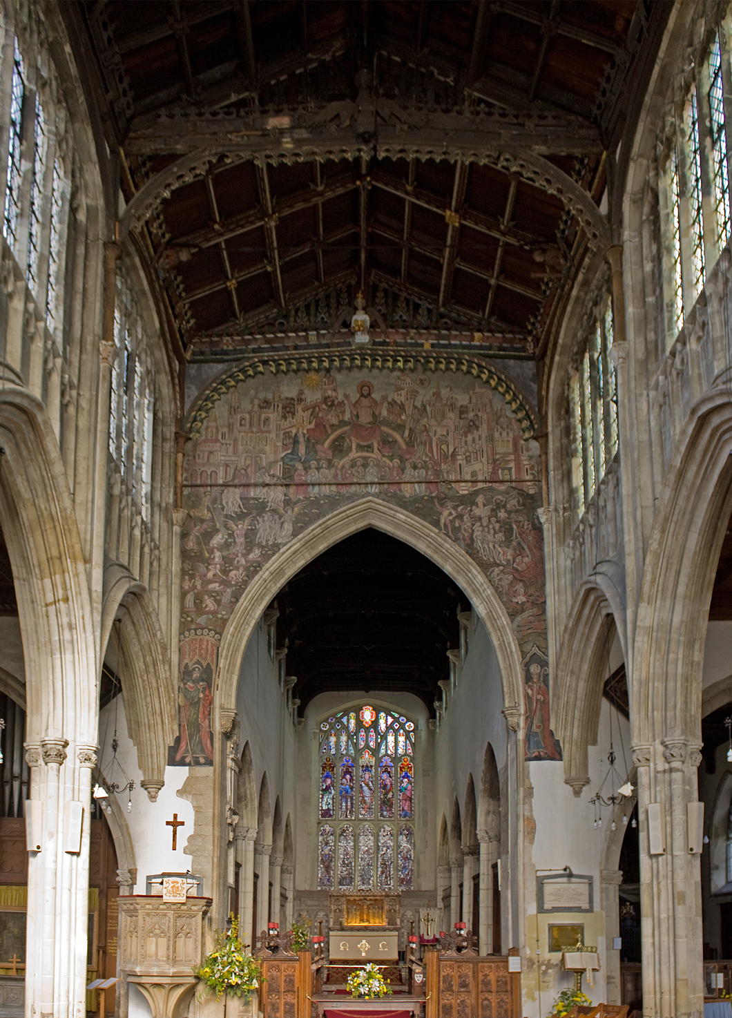 It was then forgotten about til its rediscovery in 1819 when hints of colour were discovered behind the royal arms. The limewash was removed, the remnants of the painting were revealed, recorded by a local artist, and then covered over yet again in white. Finally in 1881 the Doom was revealed to the world and subject to a Victorian attempt at restoration with mixed results.