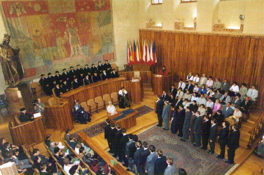 In the following centuries the university underwent numerous changes. A new academy, the Clementinum, was founded in 1562. The Jesuits were given control in 1622, and twenty years later Ferdinand III merged the two centers of learning to form the Charles-Ferdinand University. In 1784, German replaced Latin as the language of instruction, and in 1791 Leopold II established a chair of Czech language and literature. By the 1860s, the royal city of Prague no longer had a German-speaking majority, and by then Czech had joined German as a medium of learning. Lamentably, the government decided to split Prague’s university in two on lingual lines: the Royal & Imperial German Charles-Ferdinand University, and the Royal & Imperial Czech Charles-Ferdinand University.