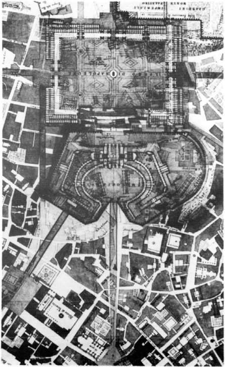 In the 1800s, with Napoleon the master of Europe, prominent citizens of various Italian cities submitted plans for the architectural aggrandisement of their communities under the beneficent patronage of the revolutionary monarch. In Rome, the architect and hydraulic engineer Scipione Perosini drafted his project for a imperial Napoleonic megapalace.