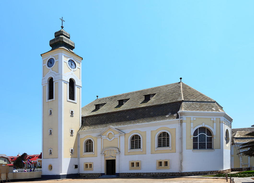 The Swakopmund church here is a congregation of the Deutsche Evangelisch-Lutherische Kirche in Namibia, one of three Lutheran denominations in the county.