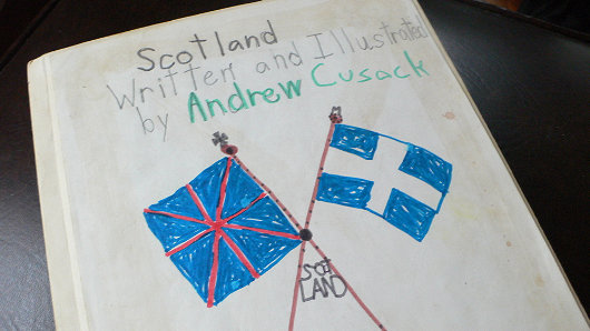 Were I to review this book, I would say it is riddled with inaccuracies and depicts a stereotypical Hollywood version of Scotland far-removed from reality. But then, it was written in 1991 by a seven-year-old (yours truly), which is already eighteen years ago now. The ultimate schoolboy error is that I was apparently incapable at age 7 of producing a vexillologically accurate reproduction of the Saltire. My incorrect version of the Scottish appears like the old Greek flag, a white cross extended across a blue field. (See the correct flag here). (more…)