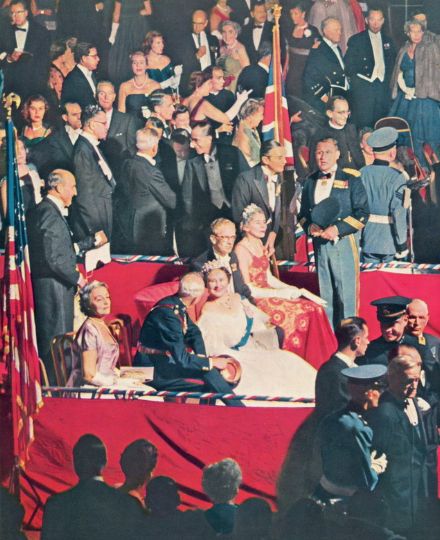 Queen Elizabeth II & the Duke of Edinburgh attend a ball in their honour at the Seventh Regiment Armory in New York; October, 1957.