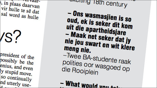 Many college newspapers have their “overheard” sections, in which they give a selection of amusing or stupid things said around town. Our paper, Die Matie, has “Kampusquote”, the latest installment of which featured this nugget: